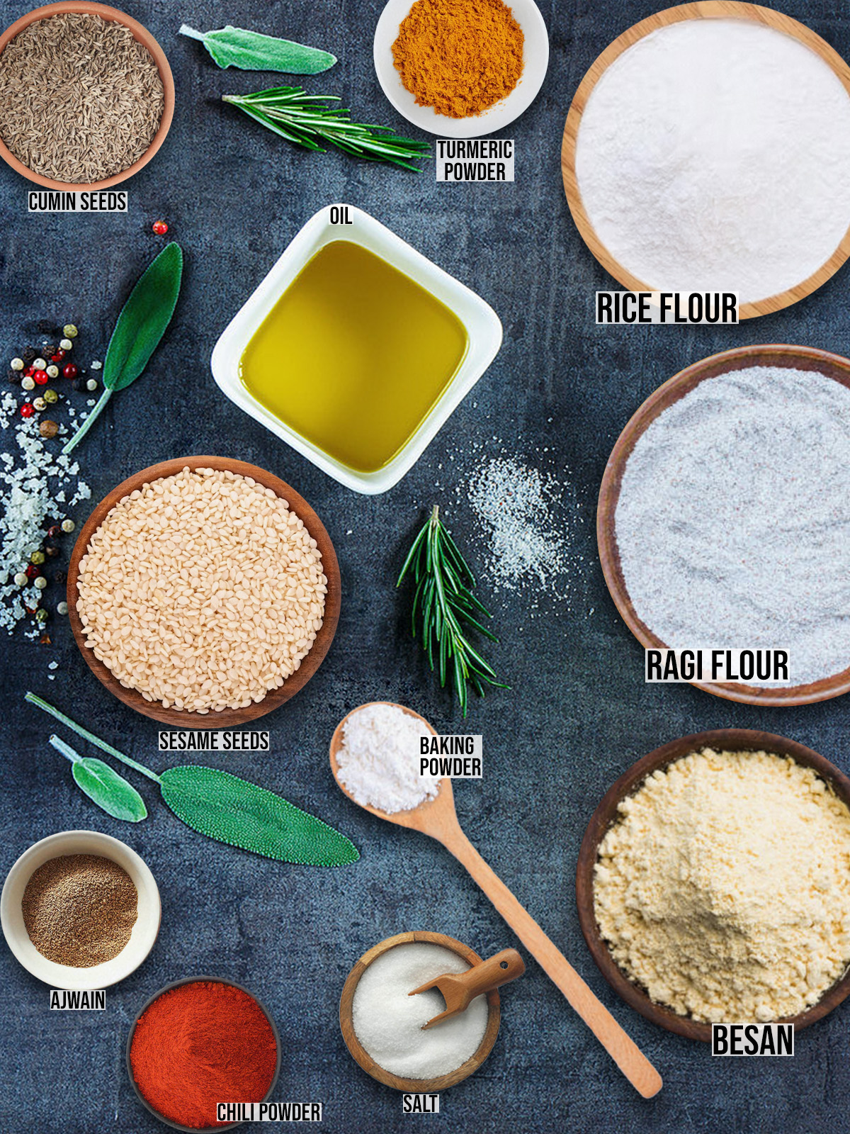 - Ragi Flour: The base ingredient, Ragi flour gives Chakli its nutty, earthy flavor. It makes the snack feel wholesome and tasty!