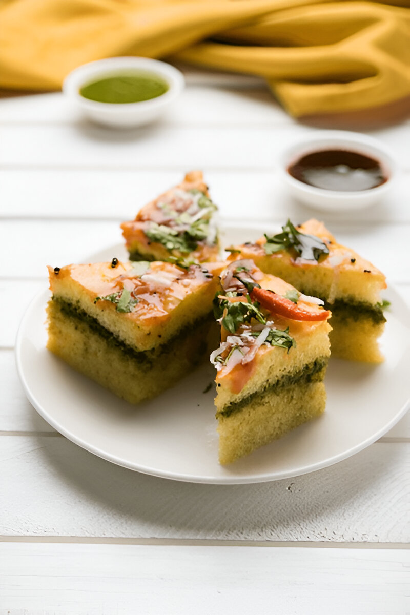 Give your classic dhokla a tasty twist! Try this Dhokla Sandwich — layered with chutney and spices, perfect for snacks or parties.