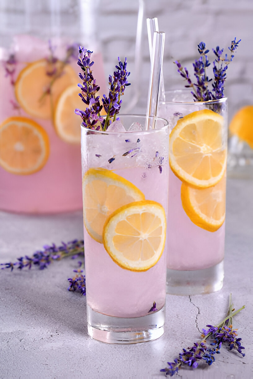 Serve over ice with lemon slices. Garnish with a lavender sprig. Enjoy your homemade floral lemonade on a sunny day