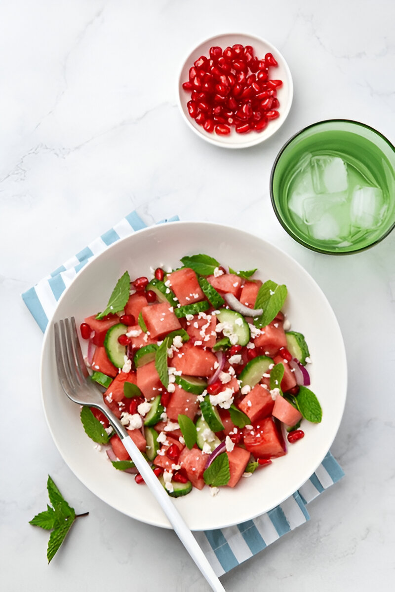 Cucumber Pomegranate seeds Mint Lemon juice Salt & pepper
